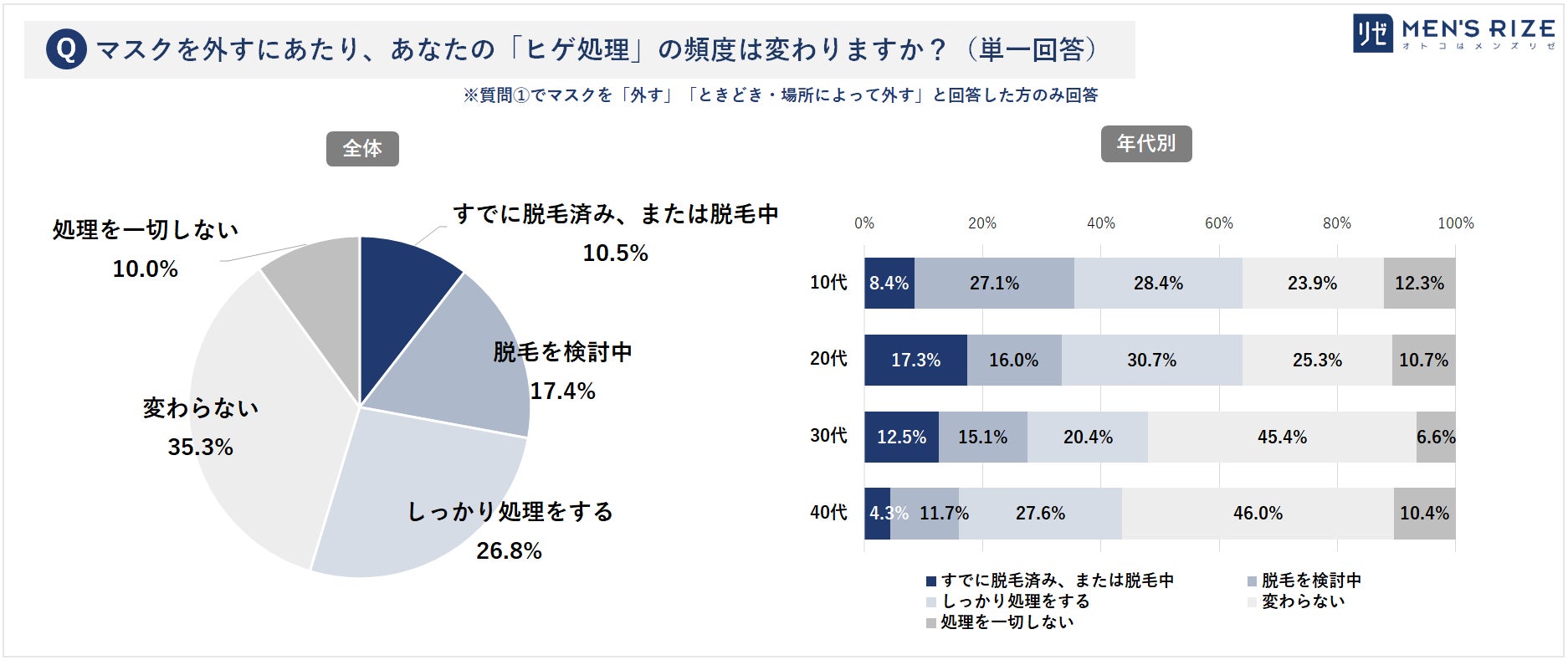 ②【脱マスクで「ヒゲ剃り(処理)」の頻度に変化は?】4人に1人が「しっかり処理する」と回答(26.8%)