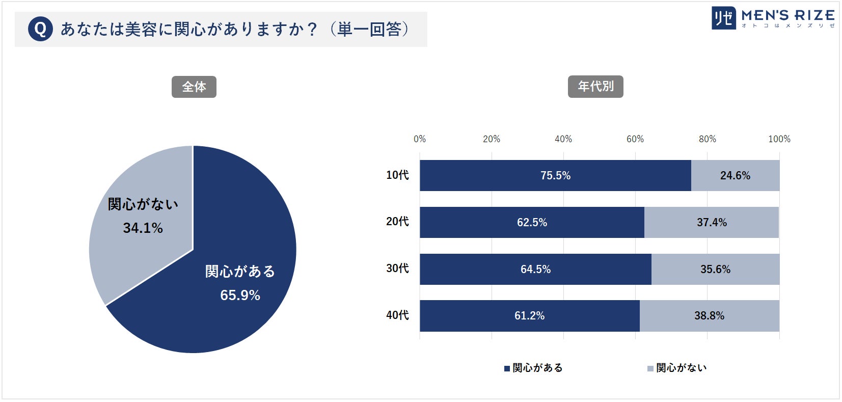 ⑨【美容への関心】男性の7割が「関心がある(65.9%)」と回答