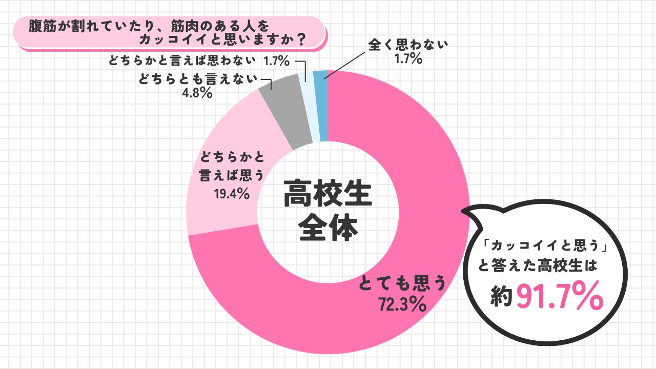 ・「腹筋が割れている、筋肉があるのがカッコイイ」と思う高校生は91.7%