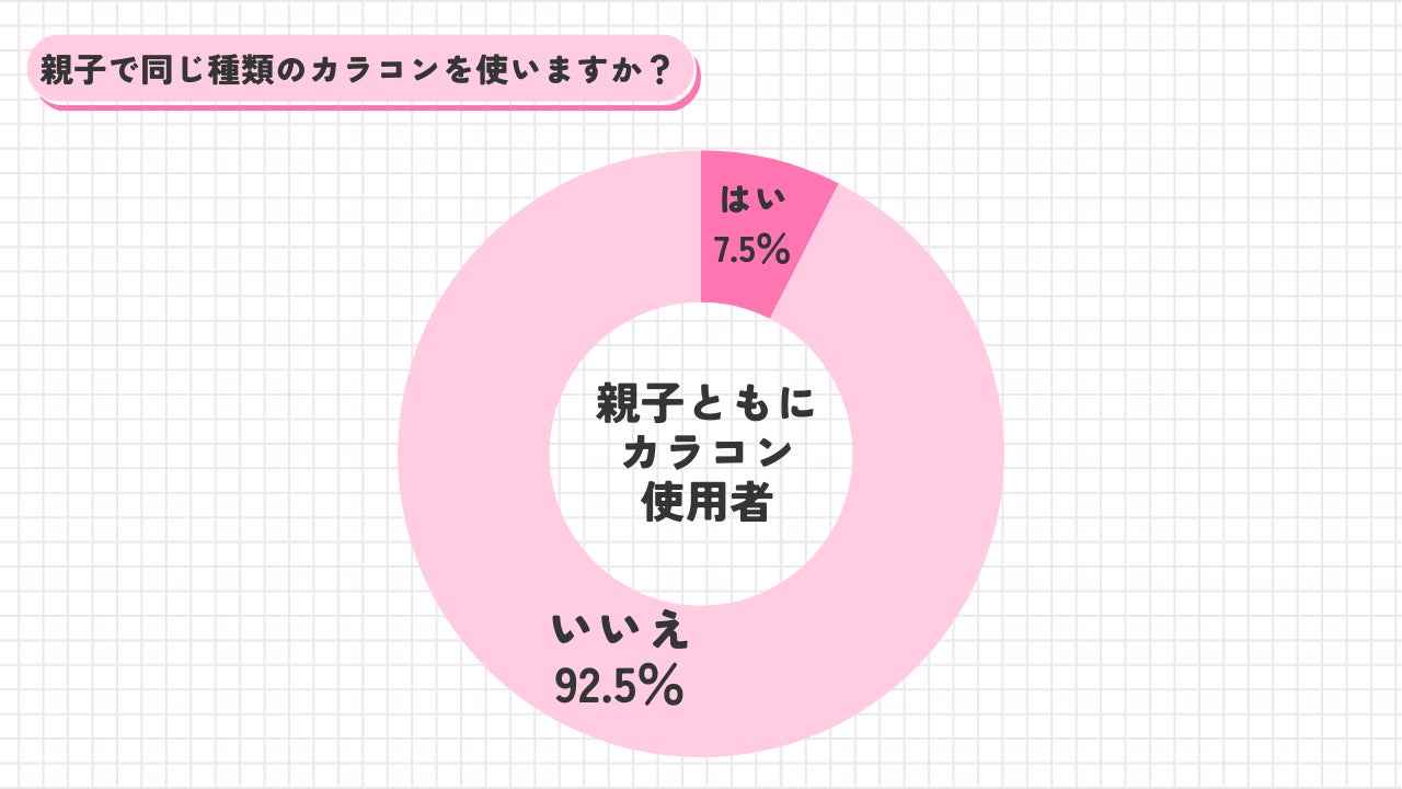 過去の調査で「カラコンを着けた経験がある」と回答し、かつQ4.で「親もカラコンを使っている」と回答した高校生120名に親子で同じ種類のカラコンを使うか聞いたところ、「はい」と回答したのは7.5%でした。