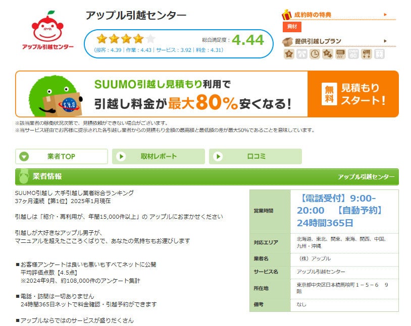 ■SUUMO引越し業者ランキングでは37ヶ月連続【第1位】