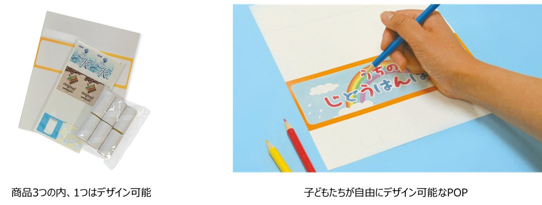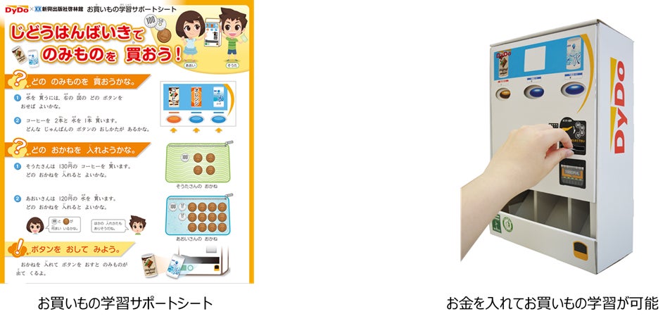 提供先から「買いもの学習に活用できる」というご意見を参考に、教科書や参考書などを数多く出版されている新興出版社啓林館監修のもと、ペーパークラフト自動販売機を活用した「お買いもの学習サポートシート」を同梱しております。
