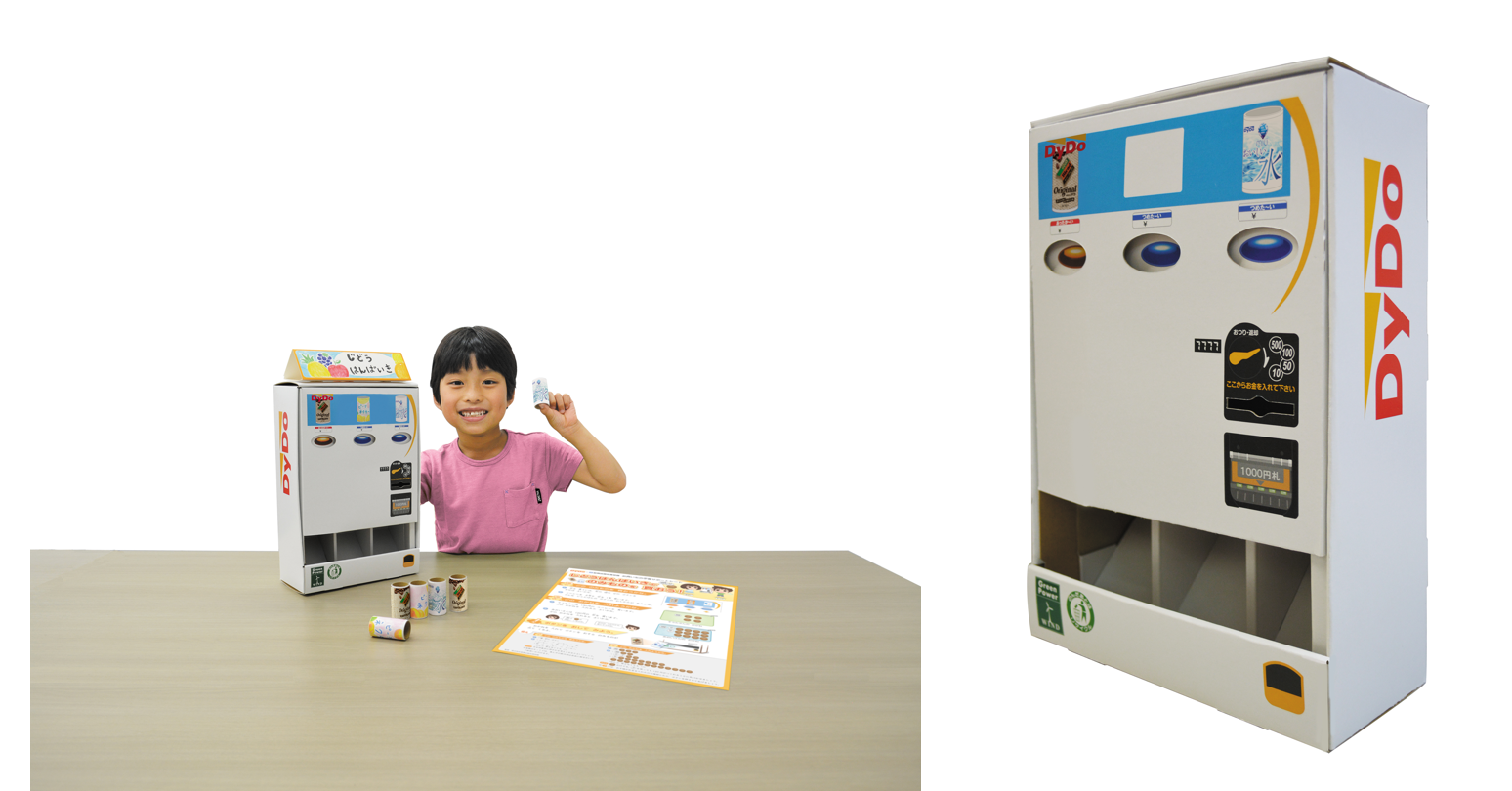 【「ダイドードリンコ ペーパークラフト自動販売機キット」のポイント】 ◆ 子どもたちが自由な発想で商品やPOPをデザインし、世界に1つだけの自動販売機を制作。 ◆ 新興出版社啓林館監修の「お買いもの学習サポートシート」を同梱し、ペーパークラフト自動販売機を 活用した買いもの学習ができる。 ◆ 寄付1,000個、団体応募1,000個、個人応募500個の計2,500個を無償提供。 |