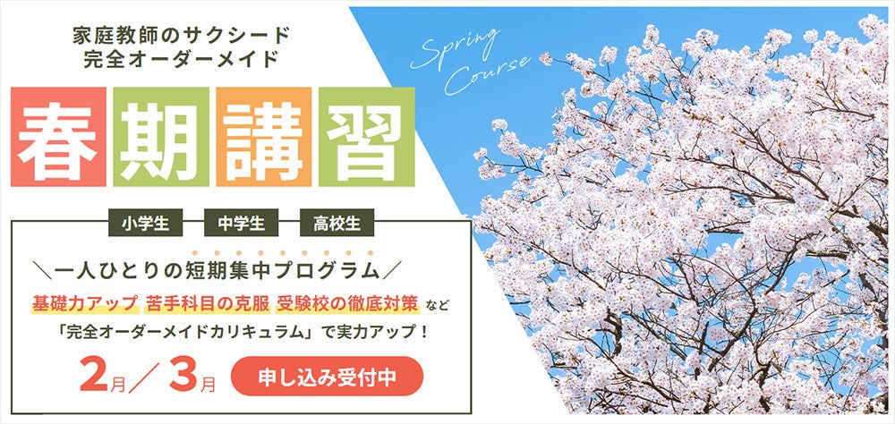 【入会金0円】家庭教師のサクシードが2025年春期講習の受付を開始いたしました。
