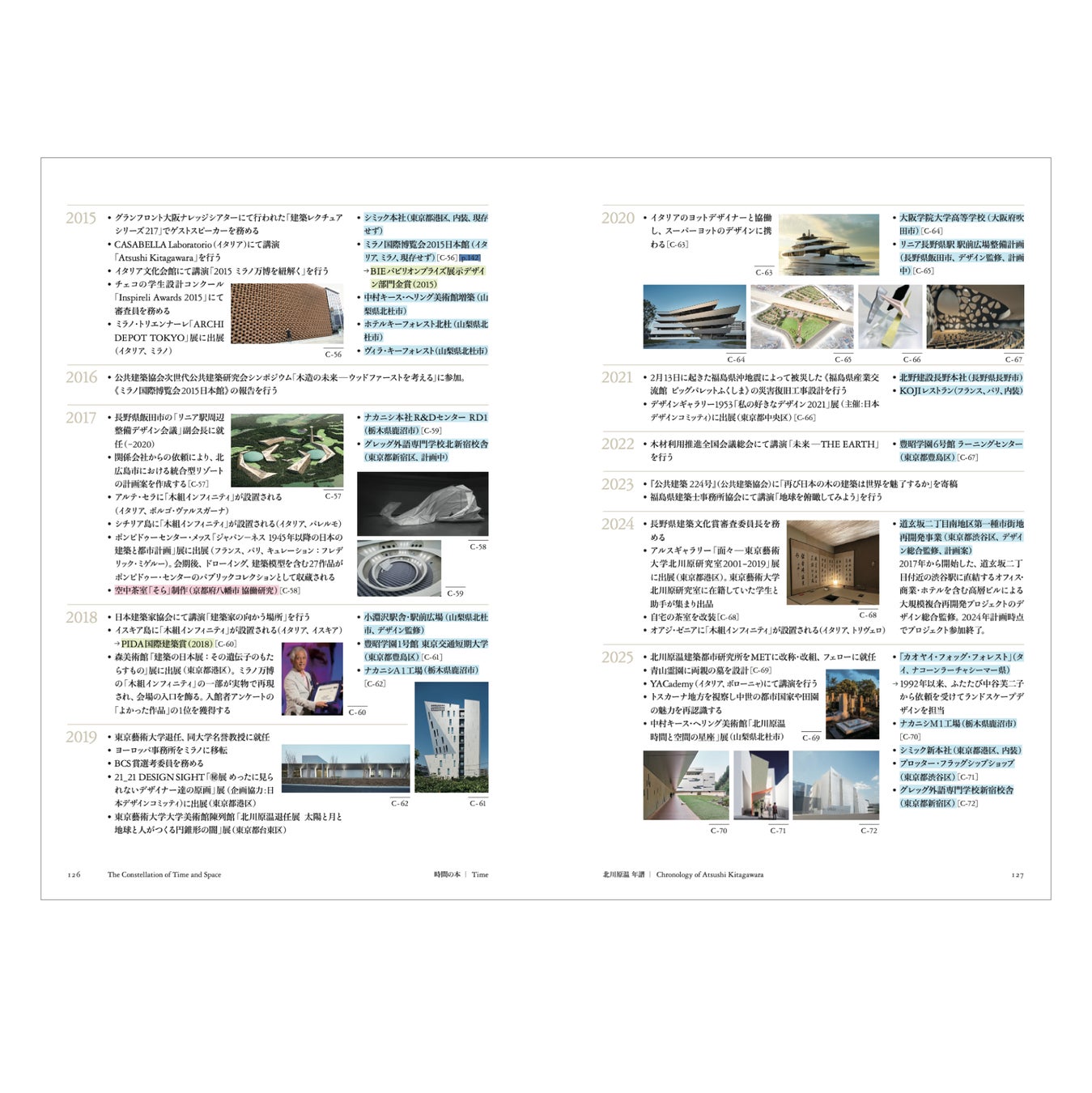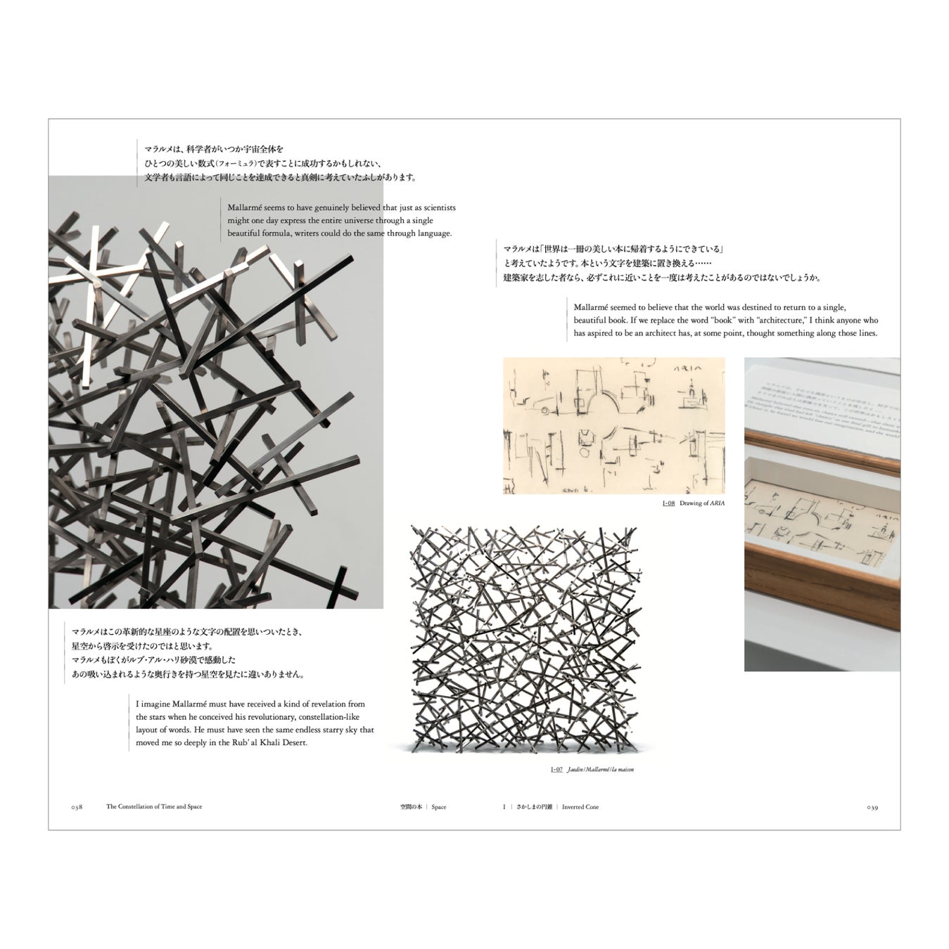 本書は展覧会の構成を反映し、「空間の本」「時間の本」の2冊に分かれています。「空間の本」では、展覧会で星座のようにつなぎ合わされた模型やスケッチ、北川原温自身のことばをインスタレーションで表現した“創造のプロセス”を紙面で再現。本書では、解説が加わり、より建築家の世界観を深掘りすることができます。また「時間の本」では、展示未公開の設計中の資料やドローイングを豊富に掲載し、《中村キース・ヘリング美術館》を事例に建築家・北川原温の構想が建築になるまでを詳細に辿ります。北川原氏と親しく交流した関係者からの寄稿や年譜を交え、北川原氏の創造過程とキャリアを総覧することができる書籍となっています。