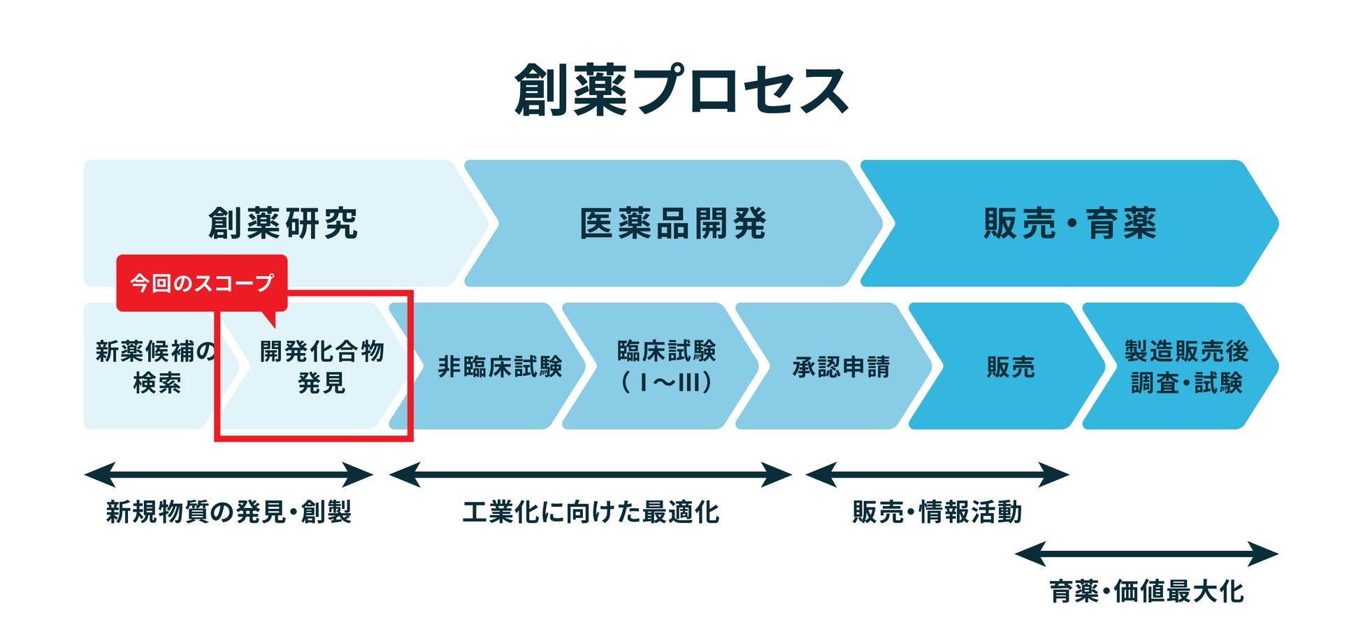 - 研究の背景:長期化する創薬プロセスの初期フェーズをAIで改善、コスト削減・工程短縮を目指す