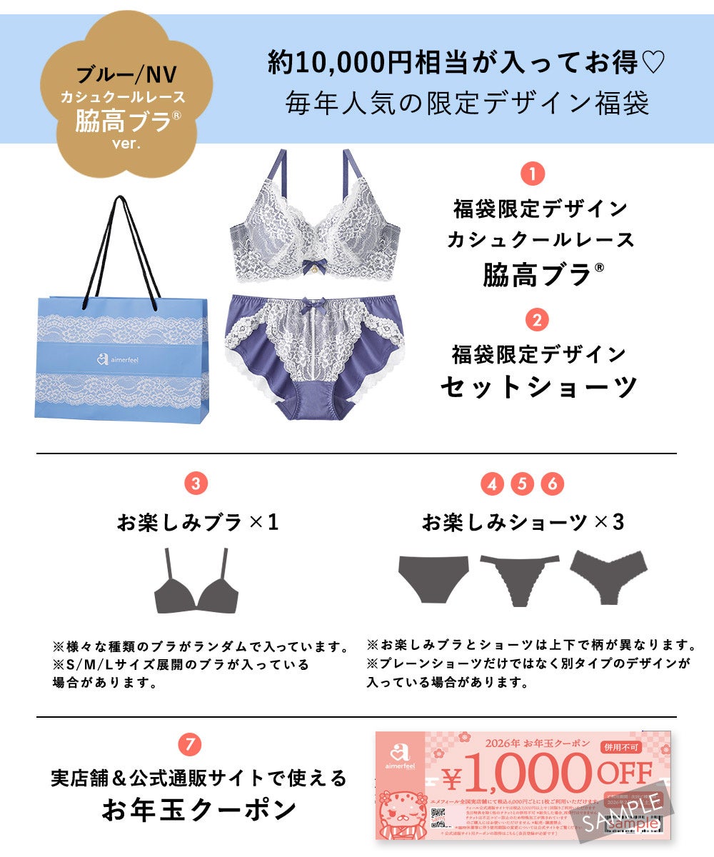 今年もaimerfeelの⼈気シリーズからお好みに合わせて選べる2タイプの限定福袋をご用意