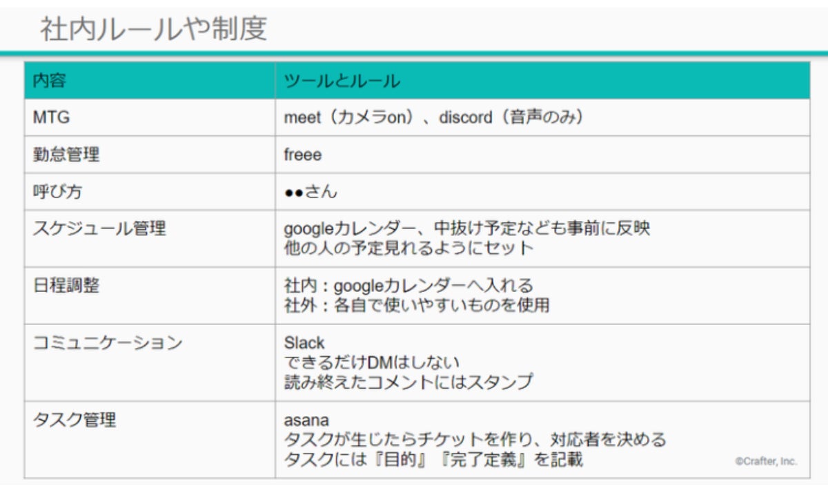 メンバーが増えていくにつれ、クラフターのカルチャーや、組織、ルールが醸成されていき、それらを伝える場があるとよいと思い、オンボーディング資料を作成しました。