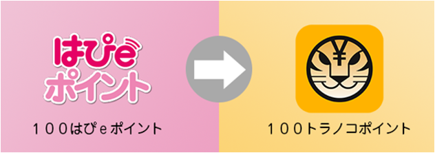 「はぴeポイント」1ポイント ⇨「トラノコポイント」1ポイント | 100ポイント以上、 100ポイント単位 | なし |