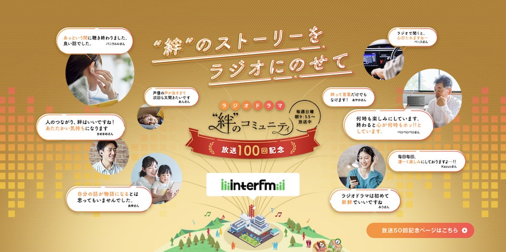 ファンコミュニティユーザーの投稿がラジオドラマになるラジオ番組「“絆”のコミュニティ」が放送100回目を迎えました