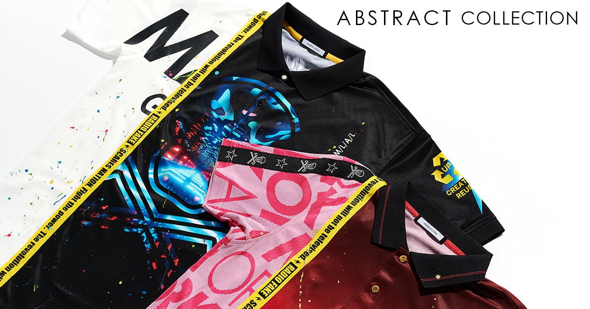 「ABSTRACT COLLECTION(アブストラクトコレクション)」は、余剰生地や不使用になったパーツ等をアップサイクルしたリメイクポロ「Hyde & Seek Upcycle Polo」と、2021年3月に発売し瞬時に完売したリメイクシューズ「TARMAC ABSTRACT MID (eco bag set)」など、全てのアイテムがサステナブルをコンセプトにリメイクされた一点物となります。カラフルな色使いを始め、シーズン限定の柄やブランドロゴなどのプリント、テープ使いのディティールに凝ったアイテムを多数ラインナップします。