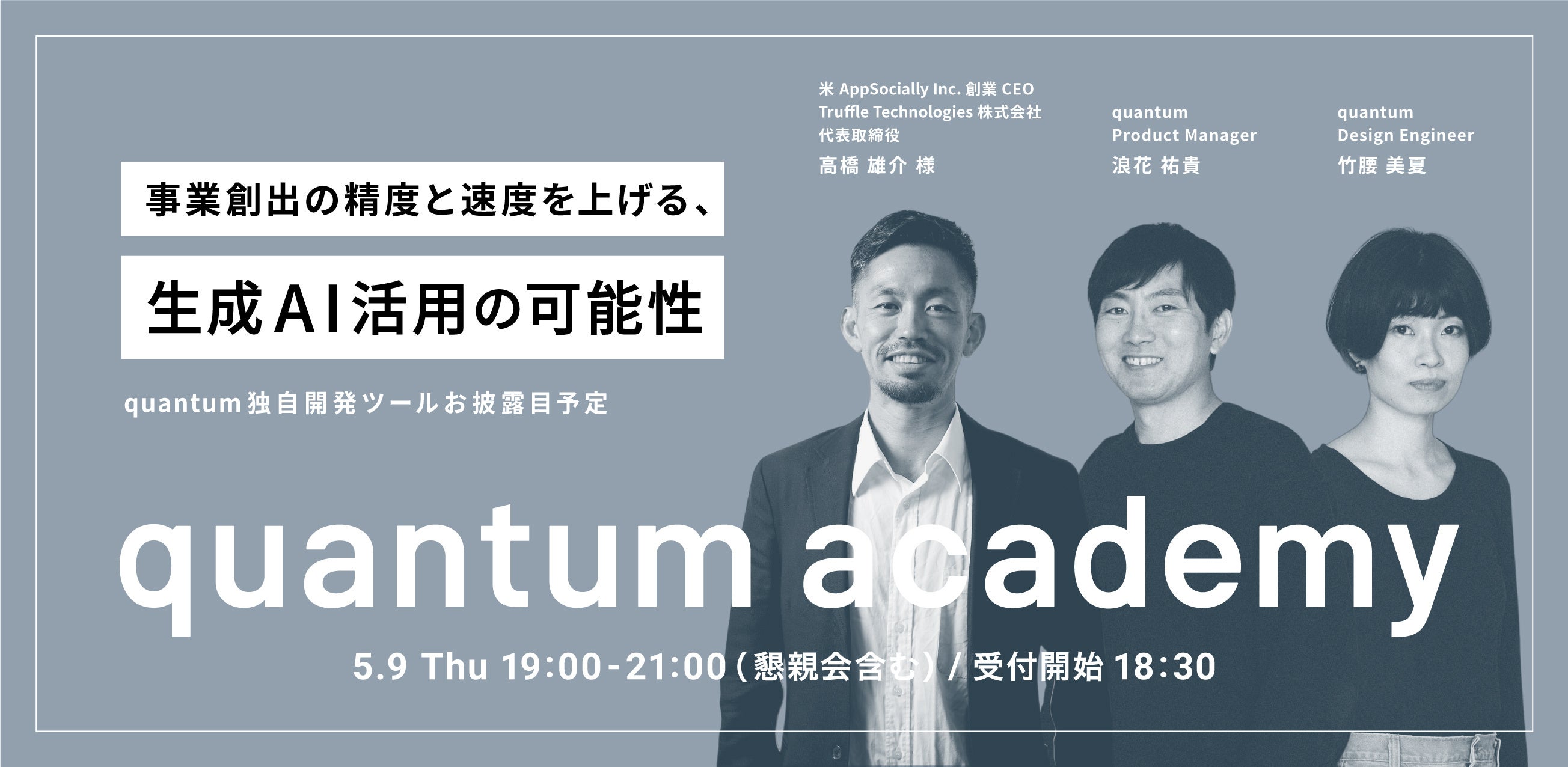 quantumでは今後も、AIなど最新技術の活用やインキュベーションテクノロジーの開発にも継続的に取り組みながら、新規事業やスタートアップの連続的な創出、なめらかにスタートアップできる社会の実現に努めてまいります。