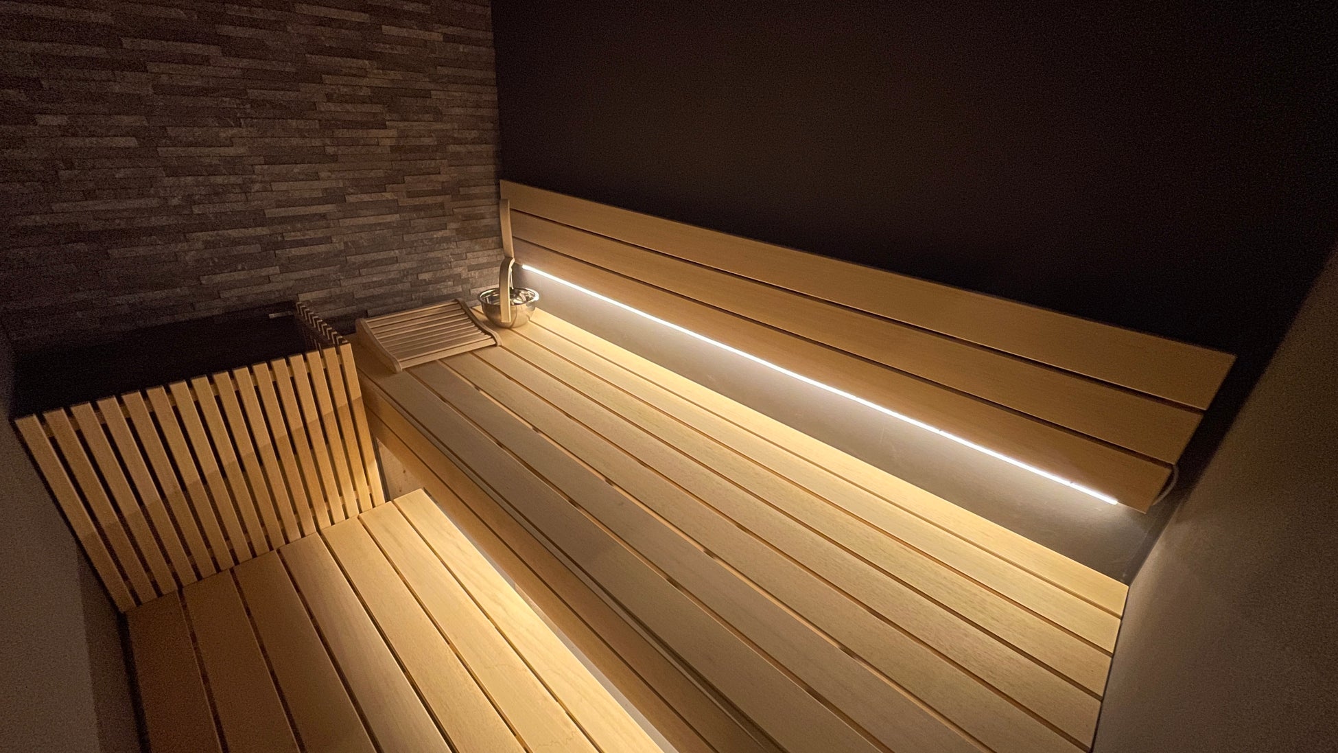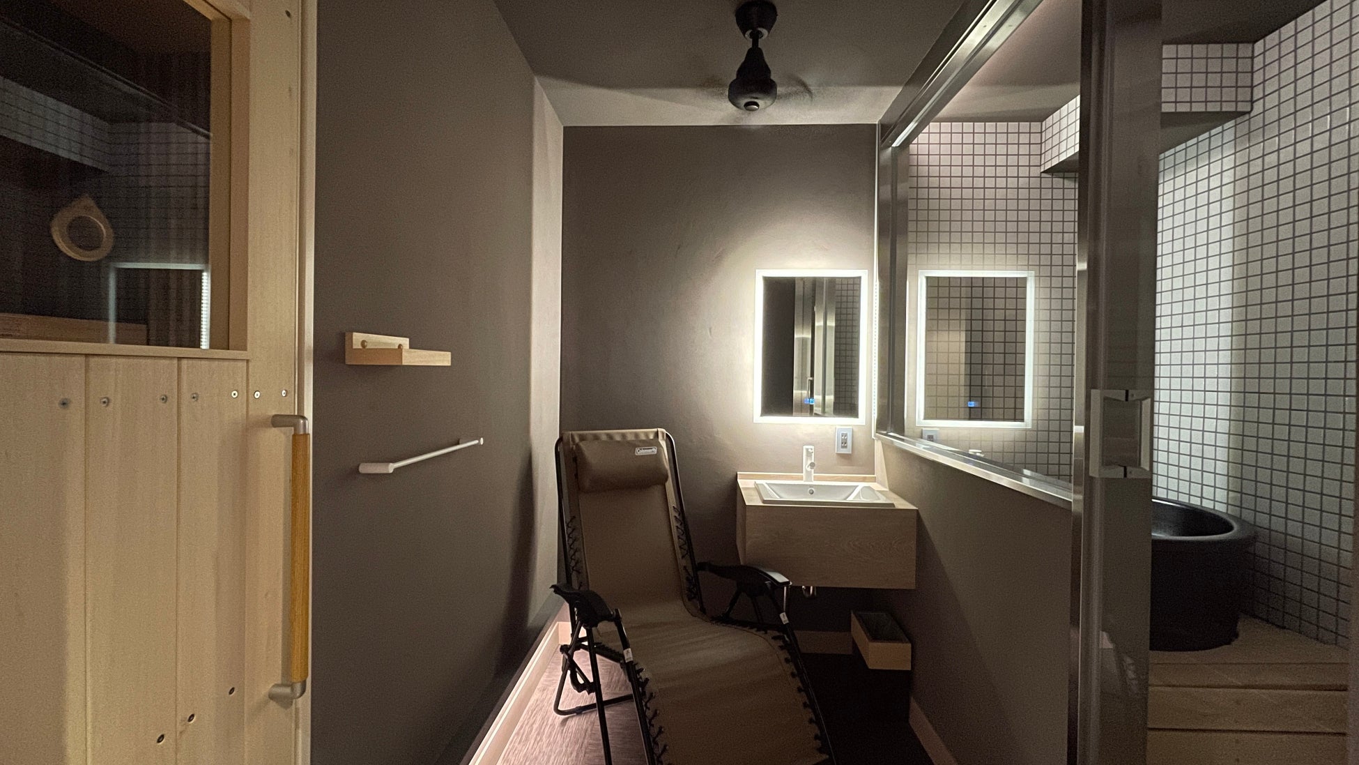 サウナフロアでは、本格的なフィンランド式セルフロウリュができるおひとり様専用の「サウナ室」と、水温管理と衛生環境と整えた「水風呂」や「湯風呂」、そして風の流れを感じる「内気浴スペース」、浅草の空気と風を感じる「外気浴スペース」を設けました。さらに特別室として、サウナ室だけでなく、水風呂や内気浴スペースまでひとり占めできる「VIPサウナ」もご用意いたしました。