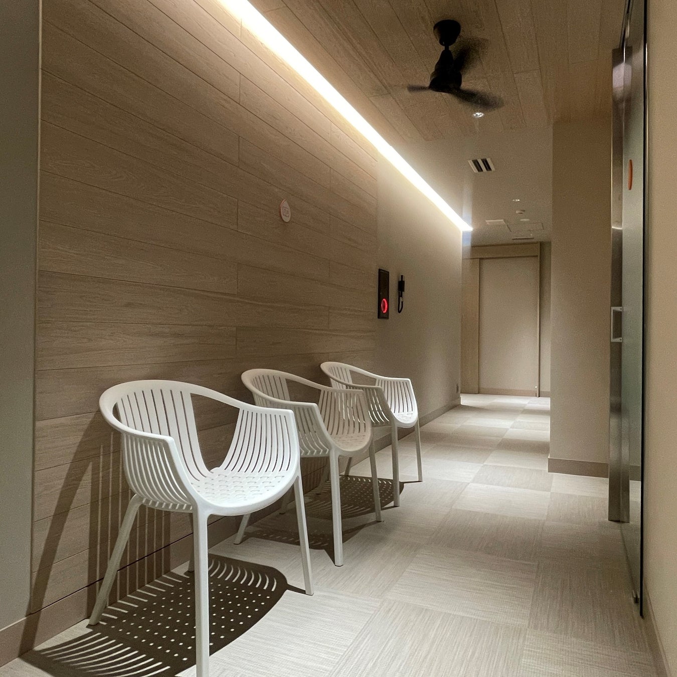 どちらにも設置した椅子は、整いたい身体がちょうどよく収まるシンプルなデザインのイタリア製チェアをご用意いたしました。