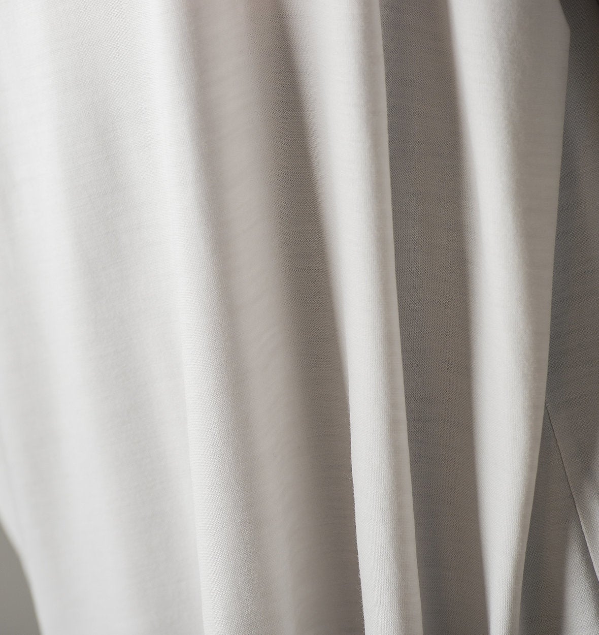極細番手ウール特有の美しい光沢とドレープ性、滑らかな肌触りを持つ贅沢素材。