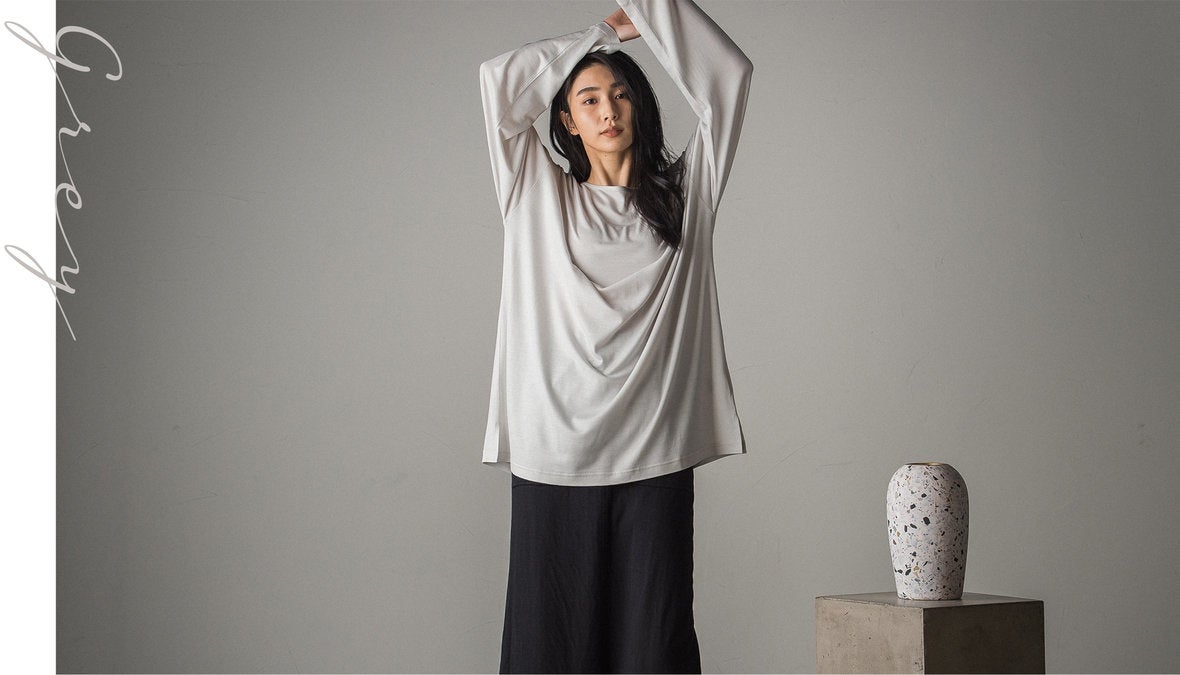 薄く軽いウールは、美しい光沢感で女性らしいしなやかさを生み出す。