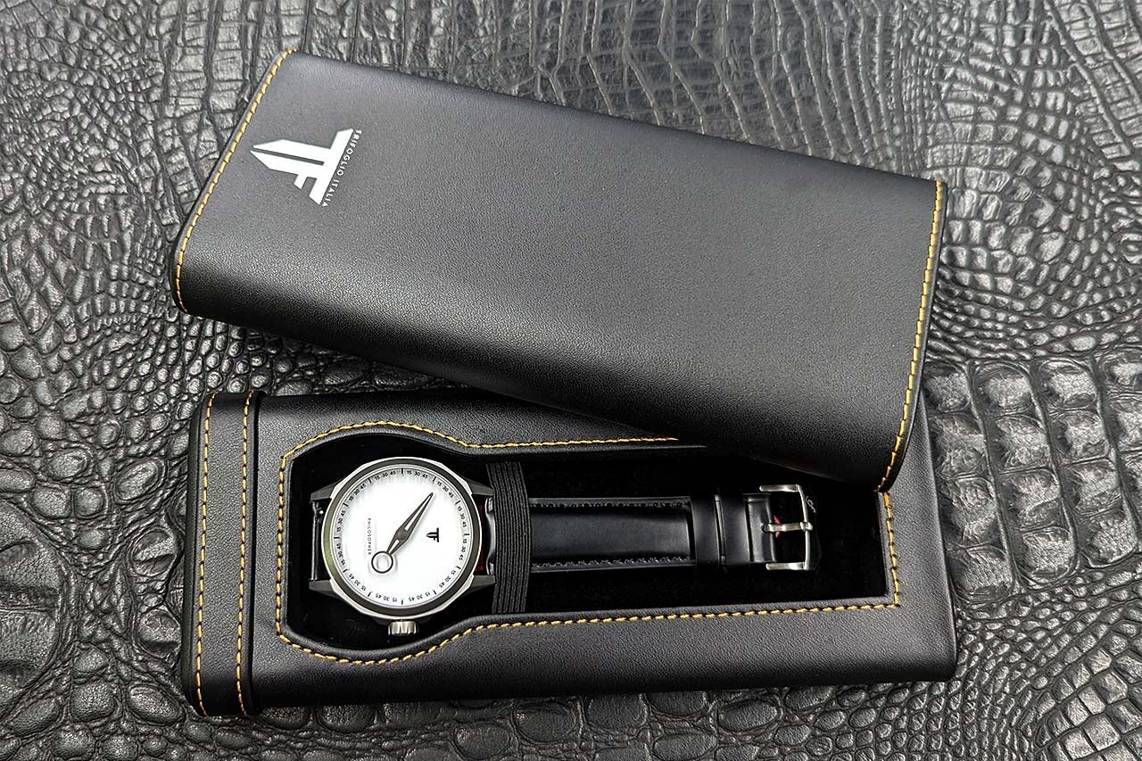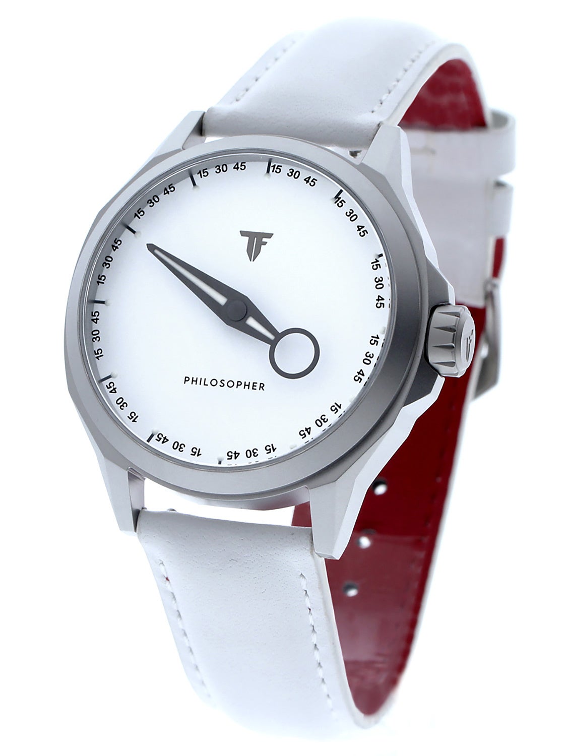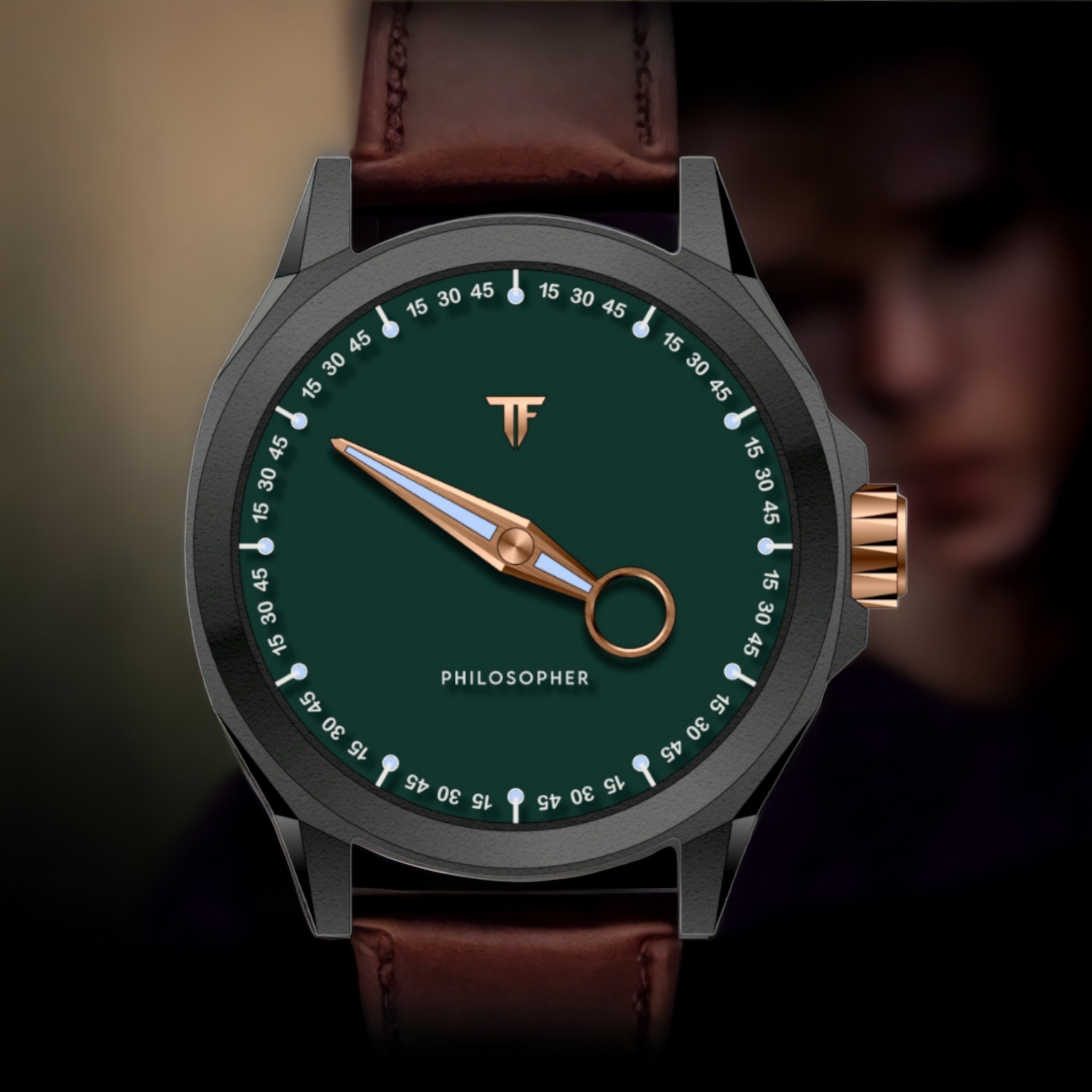 「フィロソファー」は、時間という概念を改めて考えさせ、見る者に知的遊戯を提案します。これは、ひたすら効率化が求められる現代社会において、ハイブランドからスモールブランドまで、多機能なクロノグラフウォッチが主流となっている腕時計市場に、あえて異彩を放つものです。こうしたモデルを大胆に打ち出すことが、トリフォグリオの持つ感性であり、哲学=フィロソフィーといえるでしょう。