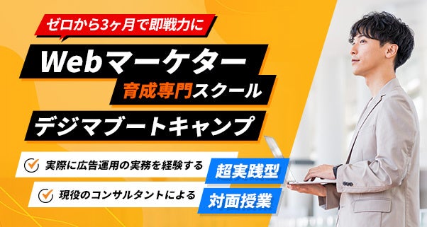 「デジマブートキャンプ」は、WEBマーケティング未経験から3ヶ月で即戦力化を可能にするキャリア支援型のWEBマーケティングスクールです。