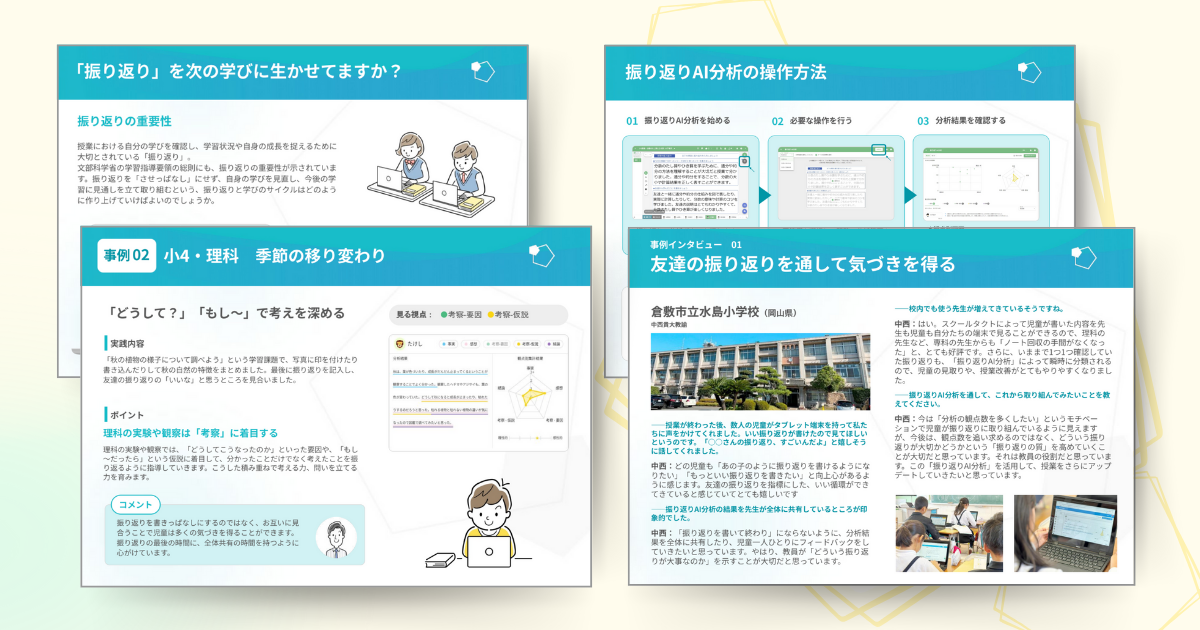 AIのサポートにより、振り返りと学びのサイクルをつくり出す校種・教科別の実践事例や、振り返りの指導のポイントを一挙公開