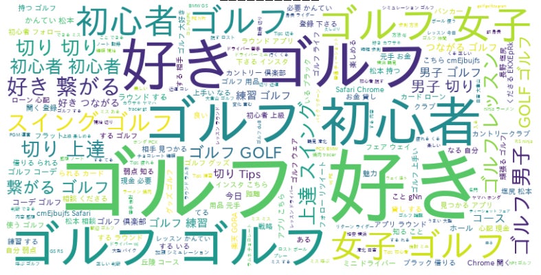 本調査に含まれる投稿のうち、「#ゴルフ好き」を含むツイート群を抽出・分析した結果、当該ユーザー層にはいくつかの共通した関心軸が認められました。