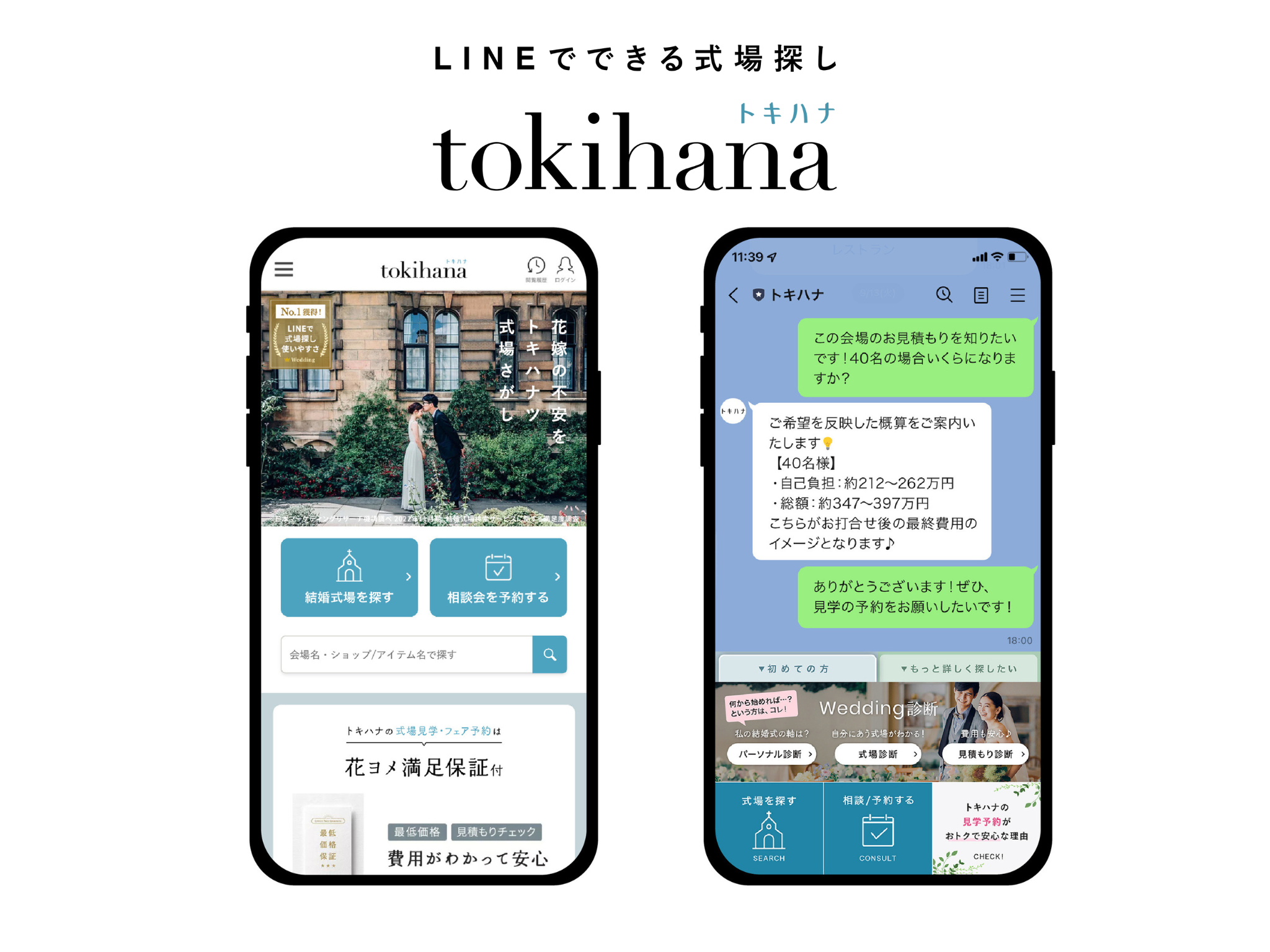 「ネットとリアルで新しい価値を」を理念とし、「これまでの常識を解き放ち、誰もが自分らしい選択をできる世界に」をビジョンに掲げ「人とテクノロジーの力で、結婚するふたりの人生を支えるインフラになる」をミッションに、LINEでできる式場探し「トキハナ」を提供。累計GMV100億円、参画式場数600、日経クロストレンド「未来の市場をつくる100社」選出。