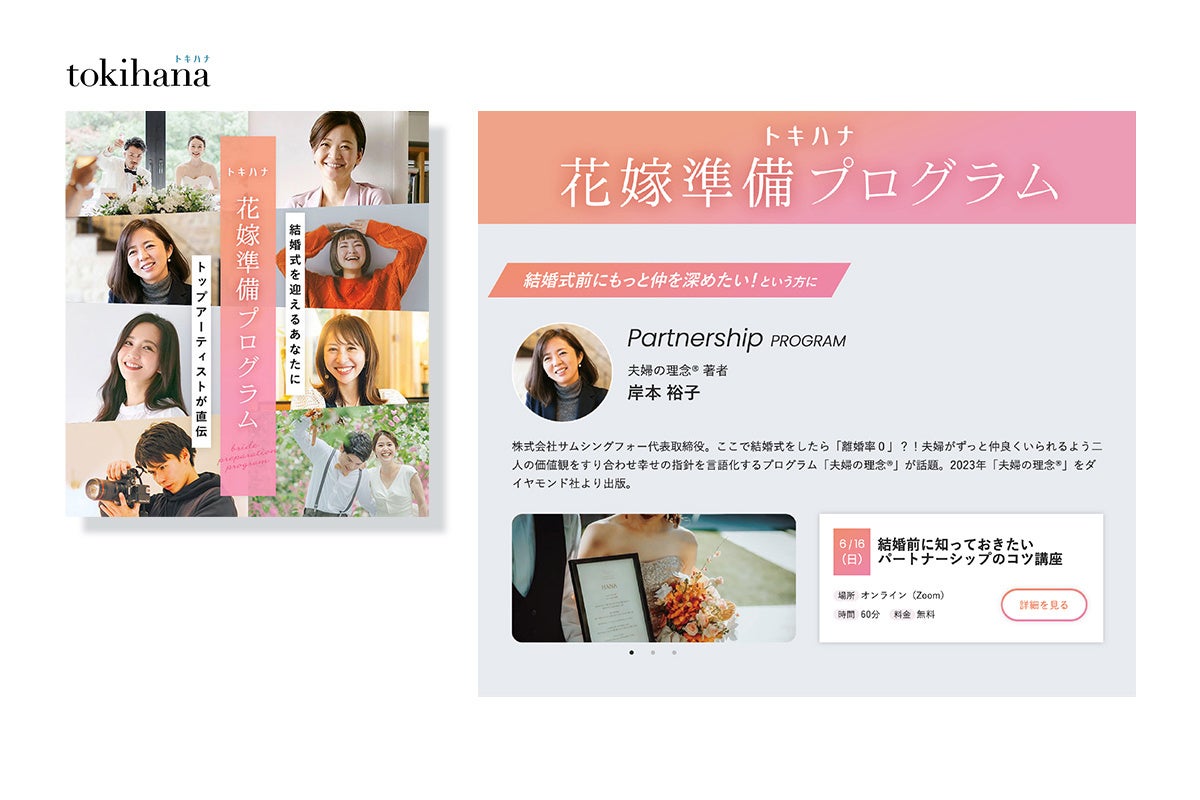 ・「トキハナ」で利用されたお客様に提供される「花嫁準備プログラムbyトキハナアーティスト」で「夫婦の理念®︎」を紹介