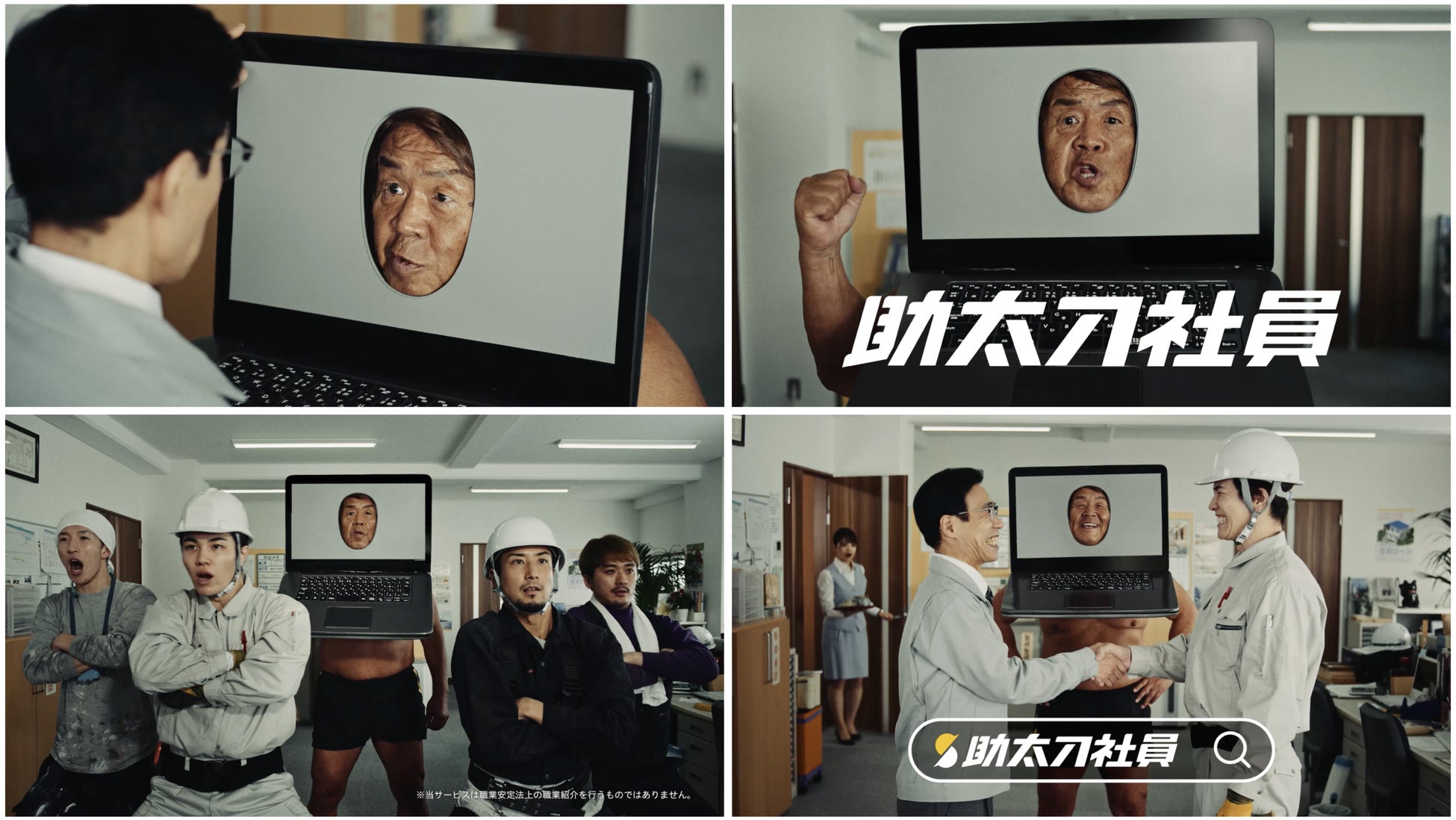 「助太刀社員」嘆く社長篇では「いい会社にいい人材を」というテーマで人材不足で困る工事会社の社長が助太刀を通じて良い職人さんと出会う様子を描いています。