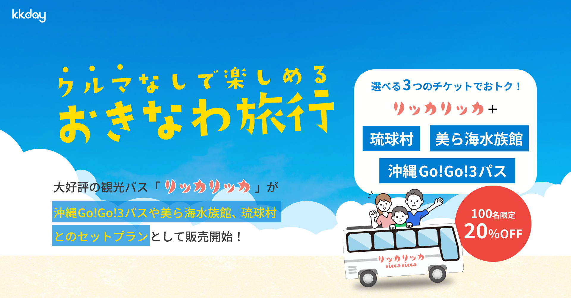 KKdayではリニューアル記念として、リッカリッカバスの全商品が20%OFFとなるクーポンを100名様限定で配布いたします。