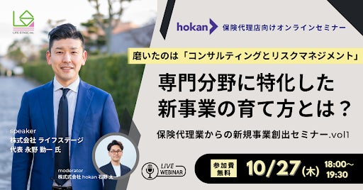 使いやすさにこだわった保険代理店向け顧客・契約管理システム「hokan®」を提供する株式会社hokan(ホカン、本社:東京都千代田区、代表取締役 尾花政篤、以下hokan) は、保険代理業の経営から一歩進んで多角的な取り組みをするユーザーにスポットを当てたセミナー企画「保険代理店&プラスワン」を開始します。新事業立ち上げの背景や事業の拡大方法などを他の経営者の方々に向けてご紹介いただくことで、保険代理店の持続可能な経営を応援してまいります。