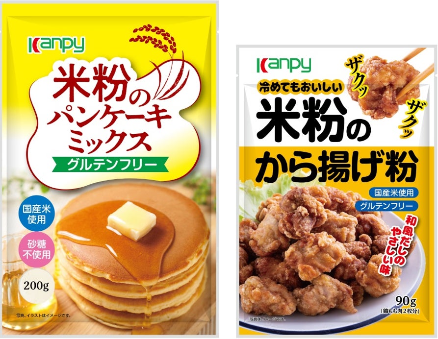 小麦粉の代替品として注目の“米粉”を使用した「カンピー 米粉のパンケーキミックス・米粉のから揚げ粉」が新発売!