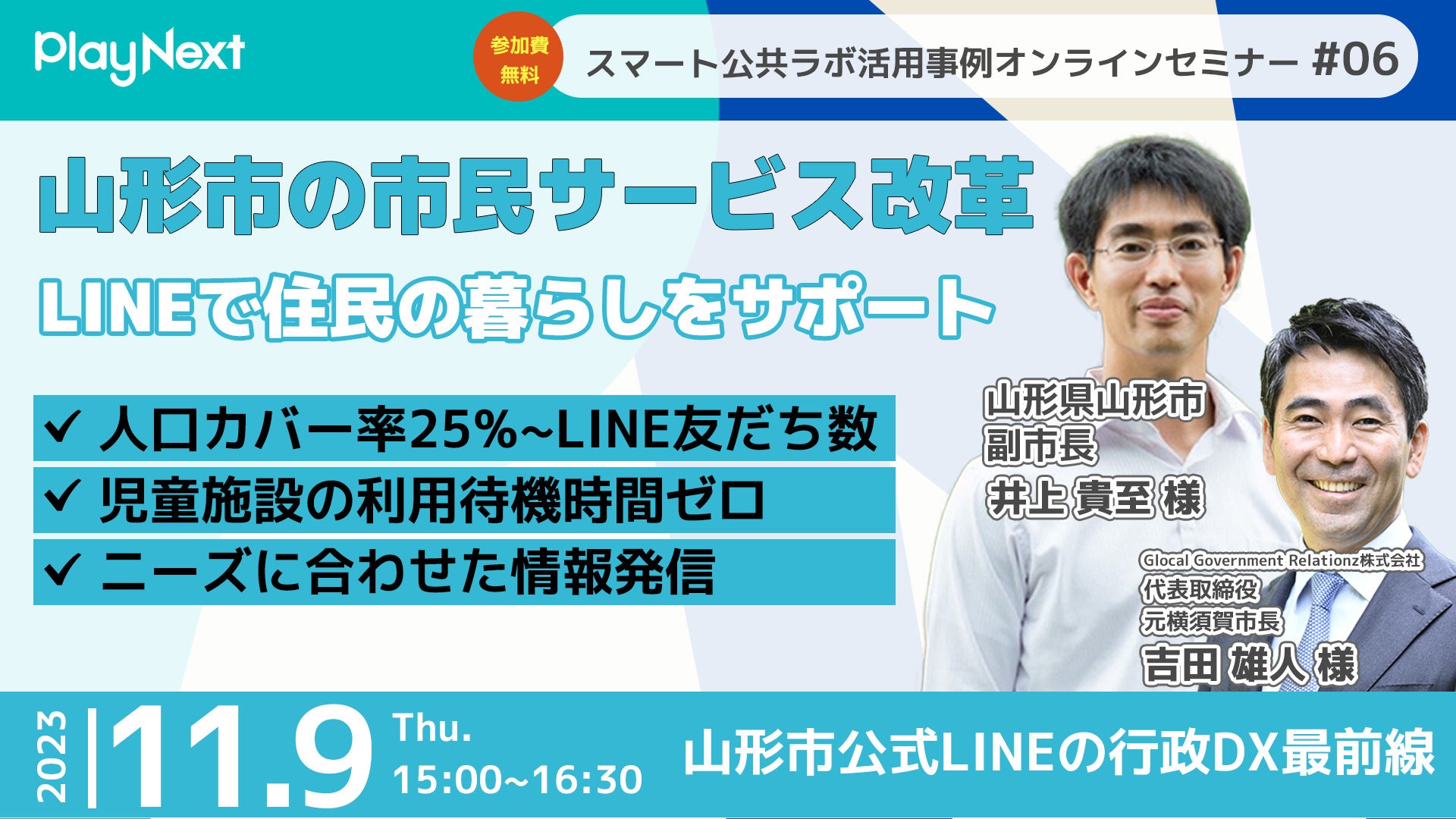 スマート公共ラボをご利用中の山形市の事例紹介セミナーを開催いたします。現場の声にご関心ありましたら、ご参加お待ちしております。