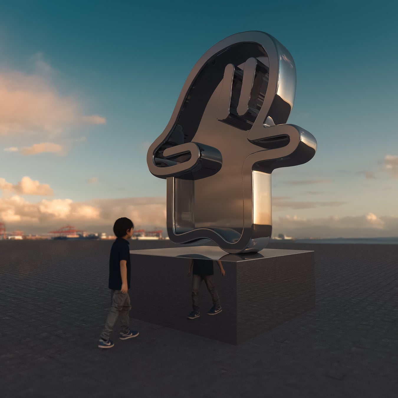覆面アーティストDONECY は、「見る」行為の根源を揺さぶる作品を制作し、視覚と知覚の境界を解体し、再構築する。2025 年開幕の大阪万博では初のパブリックアート兼初の立体作品「 Where I Vanish」 を発表。遠景では鮮明に姿を捉えられるが、近づくにつれ、鏡面に映る自身に視線を奪われ、彫刻そのものが消失していく。シンプルな一筆書きのフォルムに「見る」ことの矛盾を内包し、見る者を存在と不在の狭間へと誘う。DONECY の作品は、視点ではなく、見る者の「無意識」に作用する。見ようとした瞬間、それはすでに消えている。