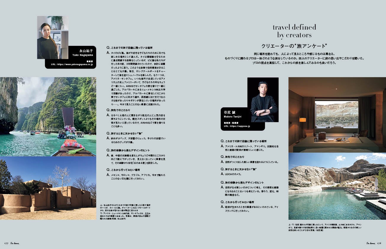建築家やインテリアデザイナーの旅の思い出やこだわり、旅から得たデザインのヒントについて紹介。そのほか、日常に非日常を取り入れた住まい、ホテルのベッド&バスルームの設計手法など、暮らしやデザインを軸に、旅することの価値を探ります。