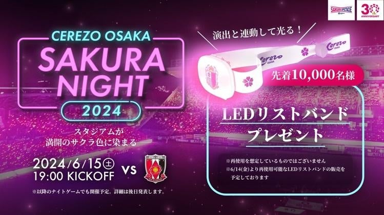 さらに、今年で3年目を迎える『SAKURA NIGHT(*4)』も、ファナティクスとセレッソ大阪が一体となって企画した人気のイベントです。クラブカラーのピンクに光るリストバンドをつけたファンと会場が一体となり、会場一面が桜色に染まります。今年は演出連動型LEDにより、会場がさらに鮮やかなピンクに染まり、桜を選手と共に楽しむことができます。