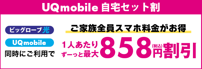 ※割引額はUQ mobileでご契約中のプランによって異なります。