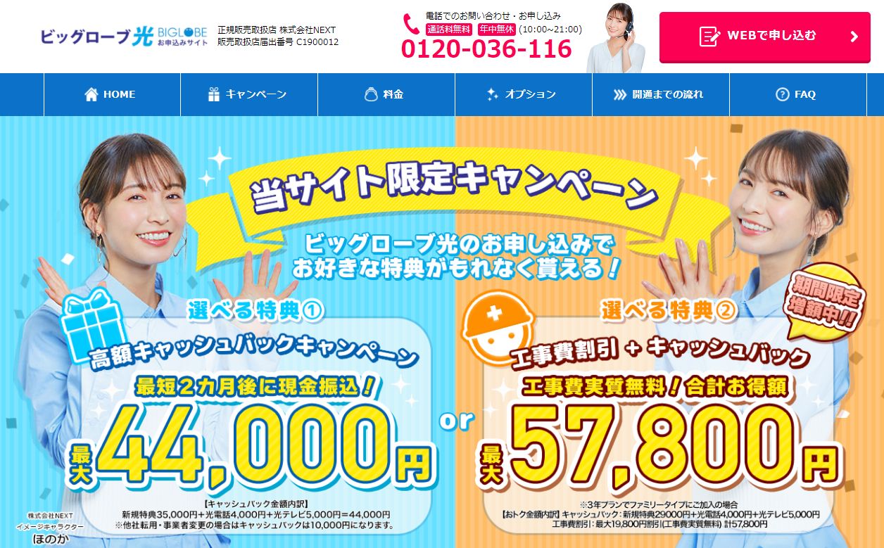 ビッグローブ光のお申し込みをご検討されている方はこの機会に是非ご利用ください。