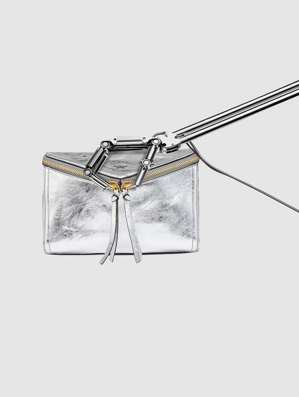 本キャンペーンの中心アイテムとなる新しいDIAMAND 3Dバッグ。大きなジッパーが特徴的で、デジタルノマドのお客様に最適なアクセサリーです。牛革スエードや上質なイタリアンカーフレザー、目を引く銀色のメタリックカーフレザー、MCMのクラシックなコニャックヴィセトスなど、様々な素材の組み合わせがスタイルと機能性を両立させています。