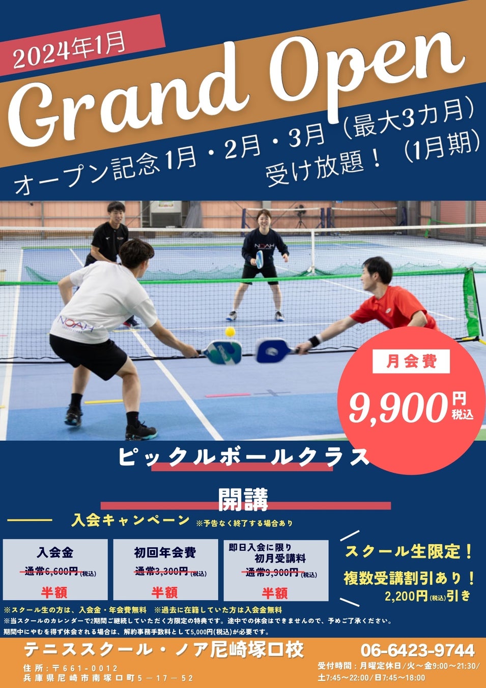インドアテニススクールを全国に35校展開する業界大手のノアインドアステージ株式会社(代表取締役社長:大西雅之、本社:姫路市東山524)は、神奈川県の横浜井土ヶ谷校、大阪府の大阪池田校でピックルボールクラスを開講しており、2025年1月には新たに兵庫県の尼崎塚口校でクラスを開講しました。本格的に全国展開へ向けて、初心者でも気軽に楽しめる体験イベントを各地で予定しております。