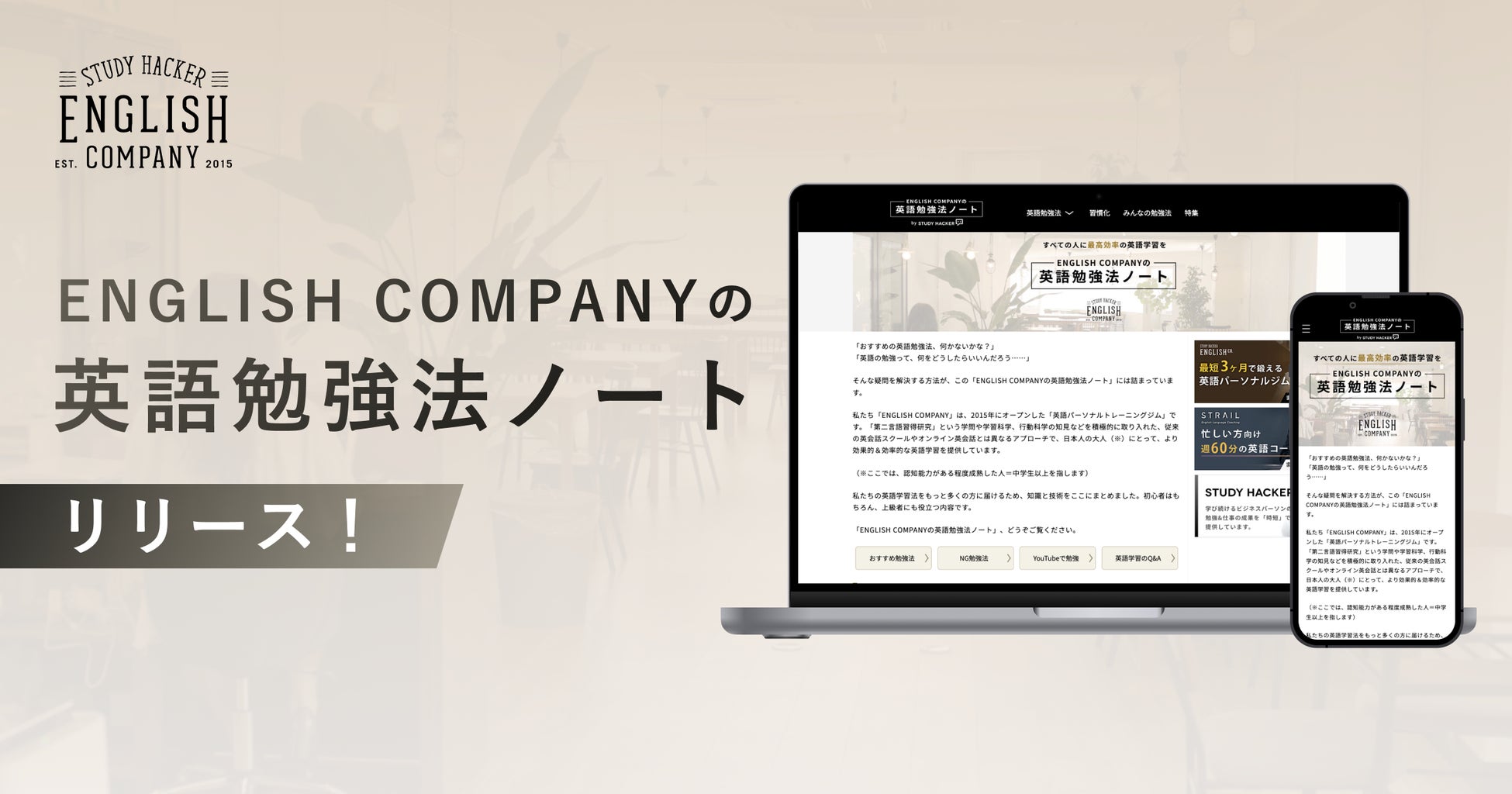 英語パーソナルジム「StudyHacker ENGLISH COMPANY」(https://englishcompany.jp/ )や自習型英語学習コーチングサービス「STRAIL(ストレイル)」(https://strail-english.jp/ )を運営する株式会社スタディーハッカー(本社:東京都渋谷区、代表取締役社⻑:岡健作)は、オウンドメディア「STUDY HACKER」内に英語特設ページ「ENGLISH COMPANYの英語勉強法ノート」を公開したことをお知らせします。