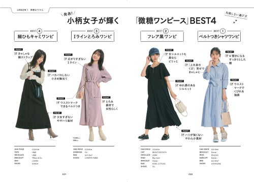 まずは小柄女子の得意アイテムを徹底マスター。日常映えする「縦落ちスカート」やほどよい甘辛の「微糖ワンピ」「上半身のくび見せトップス」「ハンサムパンツ」の着こなし方からはじまります。