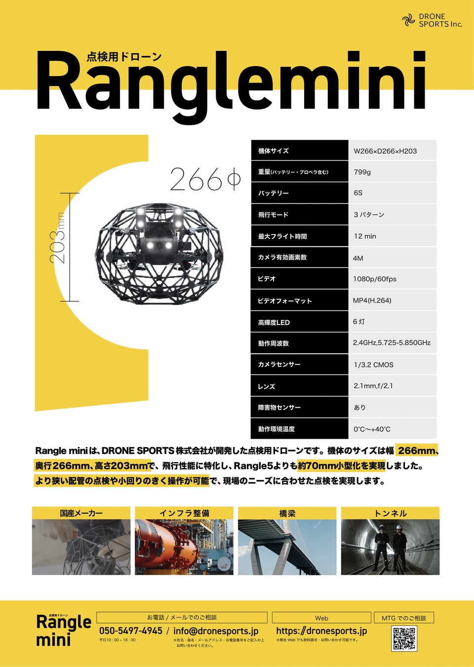 『Rangle mini』は、DRONE SPORTS株式会社が開発した点検用ドローンです。