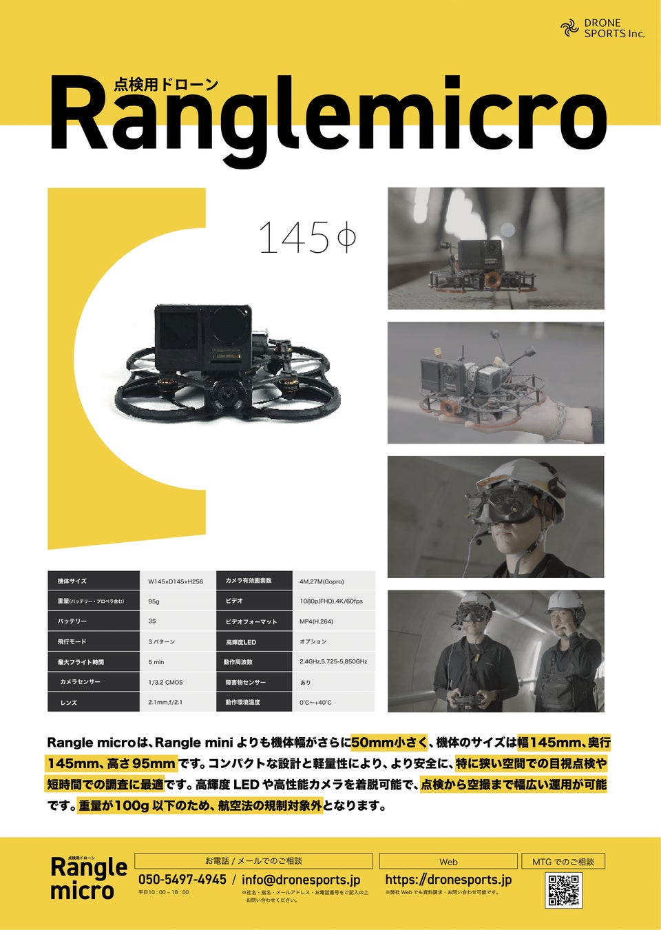 DRONE SPORTS、国内開発・製造の産業用ドローン『Rangle mini』および『Rangle micro』2機種をリリース - 狭小空間での点検を効率化するサブスクプランにも対応