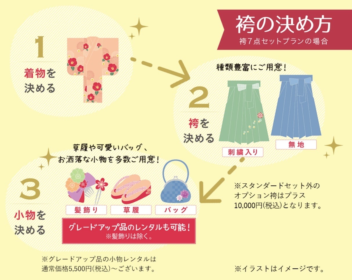 ① 袴7点スタンダードセット <フルセットでレンタルしたい方へ>