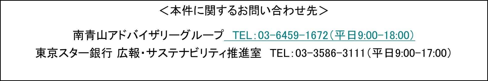 今回の提携により東京スター銀行は、上記ニーズのある法人のお客さまに南青山アドバイザリー グループを紹介してまいります。今後、両社は協力し、人的資本経営を推進する企業の成長を全力で支援してまいります。