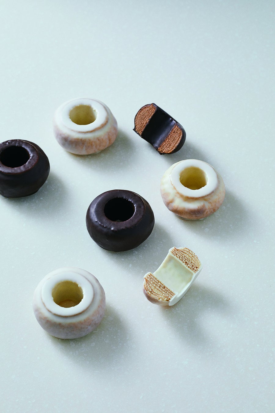 ぷっくりという名前のとおり、赤ちゃんの頬のように丸いラインを描いたバウムクーヘンを1山ずつカット。ユーハイムオリジナルのチョコレートコーチングで丸ごと包みました。コロコロとしたかわいらしい見た目なうえ、バウムのチョコレートコーチングが好きな通のお客様をも唸らせる一品です。