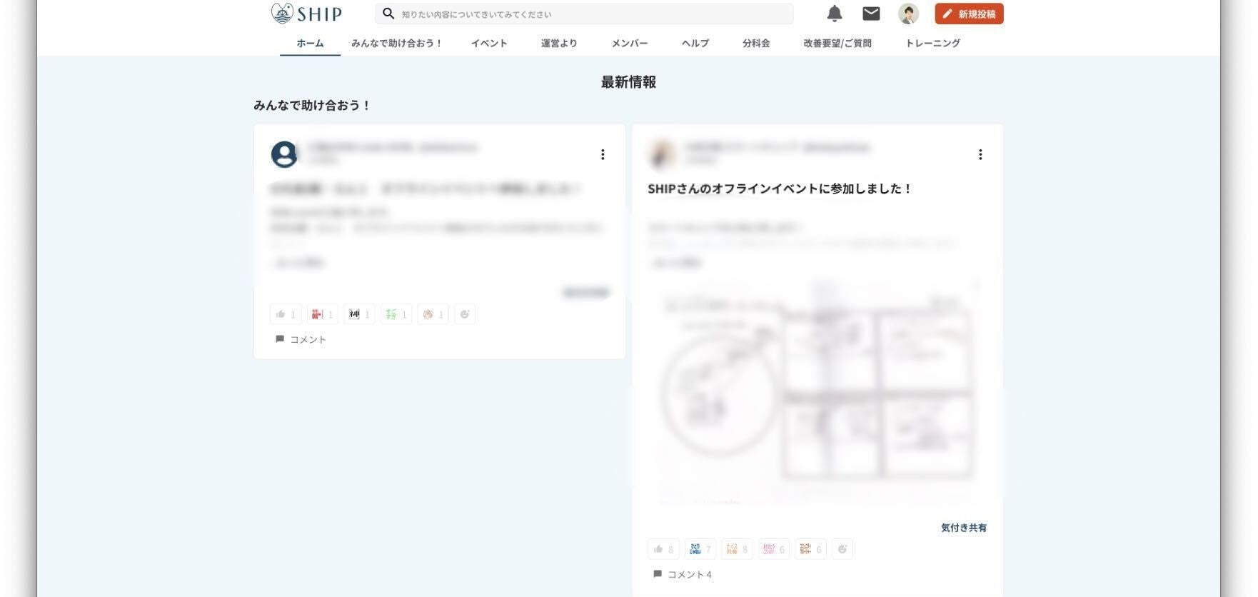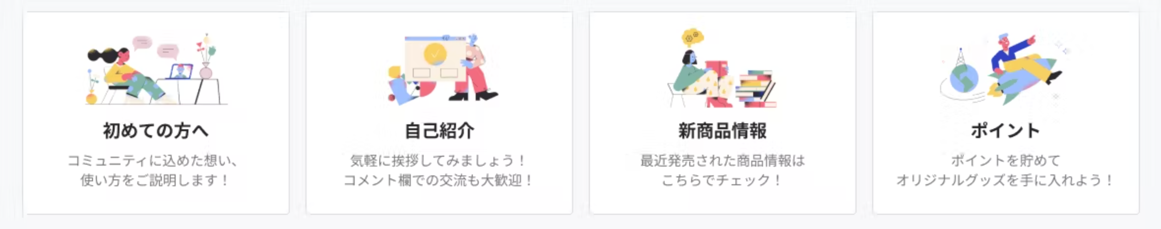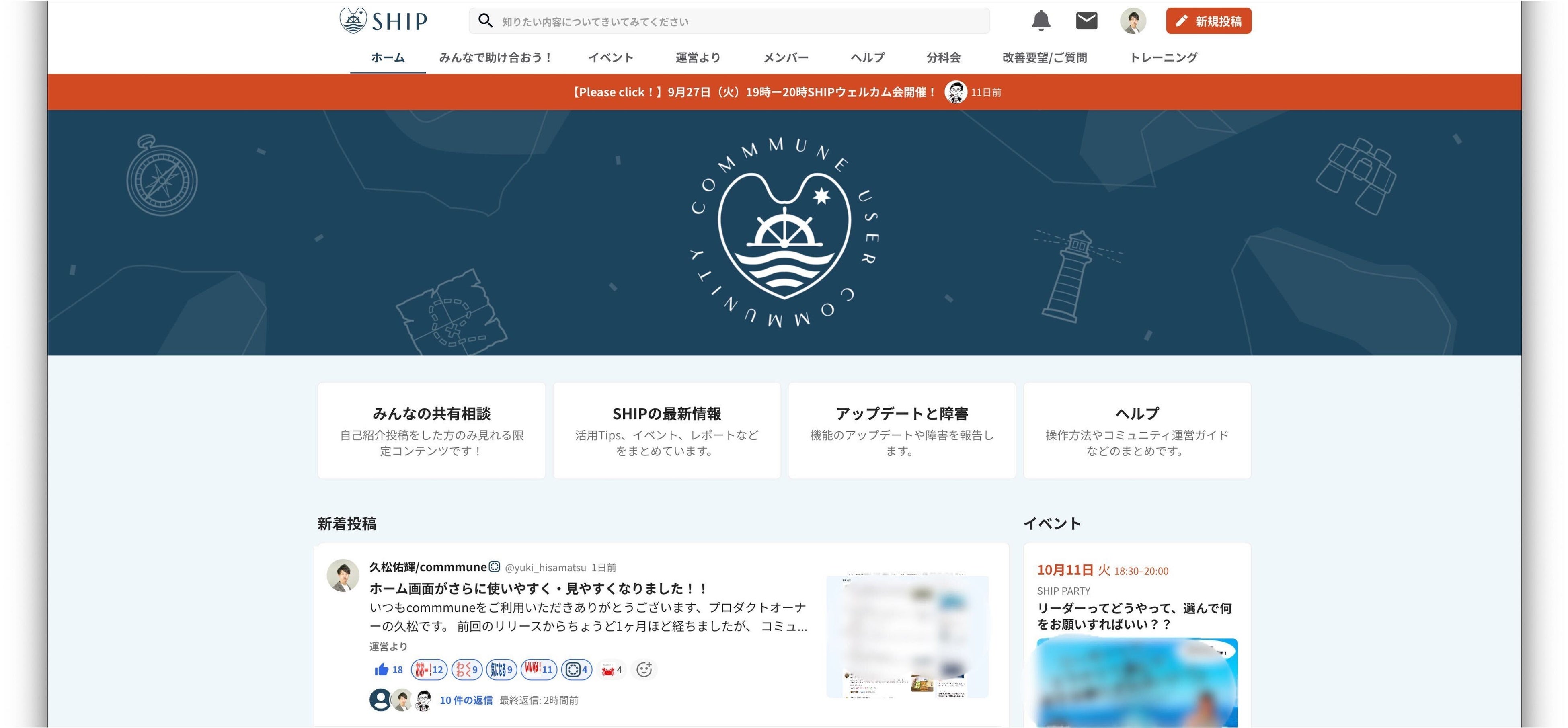 4つの新機能の追加(カードリンク機能・お知らせバナー機能・サイドメニュー機能・ 新着投稿一覧のデザイン変更)を実施し、コミュニティに訪れたユーザーが最初に見るホーム画面を、より見やすく、使いやすいデザインにアップデートしました。