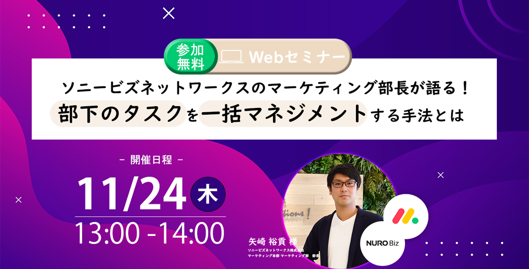 ソニービズネットワークス株式会社(本社:東京都渋谷区) のマーケティング担当者が、2022年11月24日(木)に開催される株式会社ギャプライズ(本社:東京都新宿区)が主催するセミナー「部下のタスクを一括マネジメントする手法とは」に登壇します。
