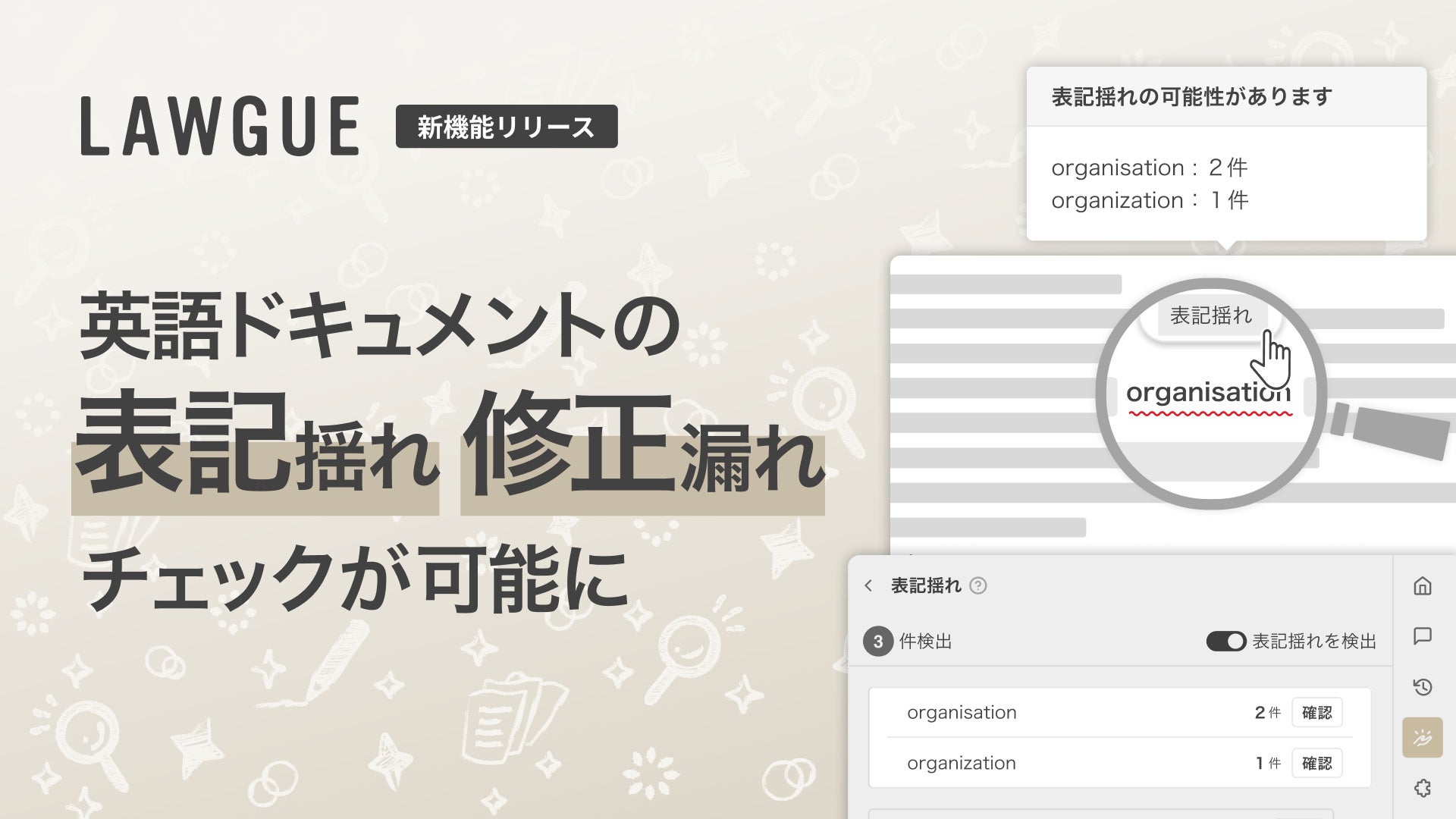 次世代AIクラウドエディタ「LAWGUE」、英文ドキュメントの「表記揺れ」「修正漏れ」チェックが可能に