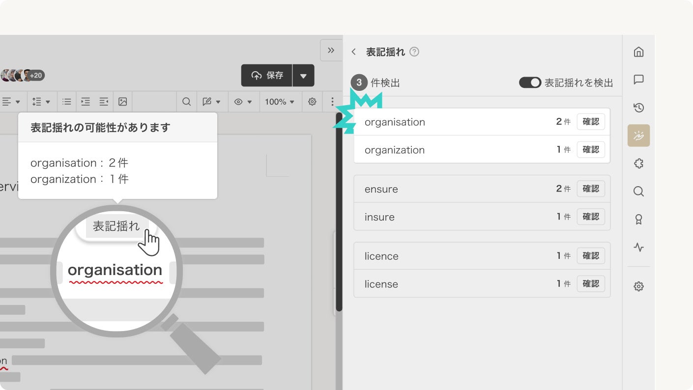 ◼︎「表記揺れチェック」「修正漏れチェック」機能の英文対応について