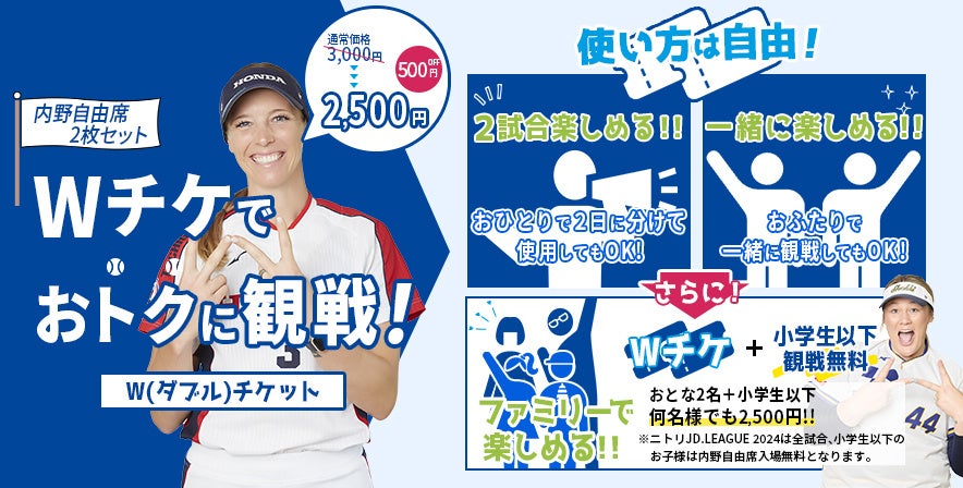 一般社団法人 日本女子ソフトボールリーグ機構(所在地:東京都新宿区西新宿6丁目14-1 新宿グリーンタワービル20階、代表理事、会長、チェアマン:三宅 豊)は、ニトリJD.LEAGUE 2024レギュラーシーズンの観戦チケットを3月15日(金)より販売開始いたしますことを下一般記のとおりお知らせいたします。